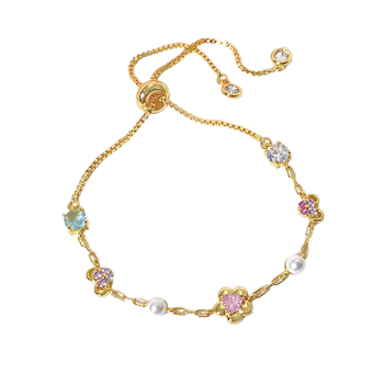 골드 도금 조정 가능한 황동 팔찌 다채로운 큐빅 지르코니아 꽃 여자를위한 유행 태국 유행