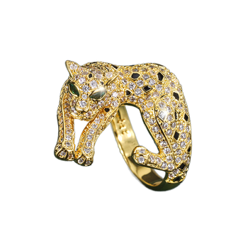 Jóias New Brass Europeu Americano Vintage Leopard Abertura Ajustável Anel Coral Zircão para Noivado Atacado